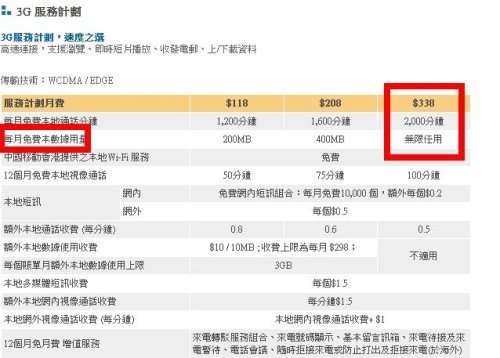 早前,電訊商打算對「無限 Plan」的流量「封頂」,但電訊管理局立即發指引表示無限數據計劃不能夠設限,包括速度及用量限制。原本各大電訊商也取得「共識」,長遠將「無限 Plan」淡出,但沒有一間公司敢做第一個。近日,中國移動(被收購前的 People)租借了 3G 網絡來經營 3G 服務。
