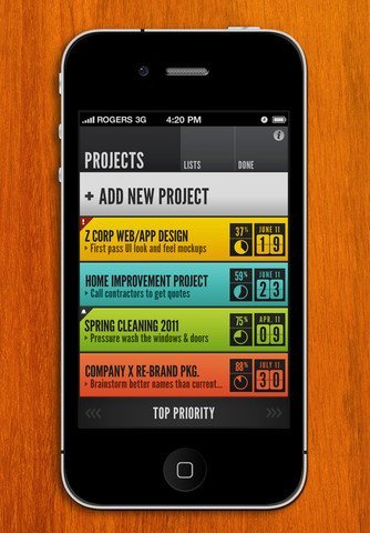 這套名為 HQ:To Do 的 Todo List App 可謂同類軟件之中介面最為出色的一套,從色彩格調已明顯感受到它的不一樣。程式也內置了項目管理功能,容許你加入很多子項目,而在 Project 主介面更會有圓形圖作完成度顯示,使操作非常直覺!用戶更可對每項工作設定為不同色彩、重要性,從而讓這套 App 顯示出要優先處理項目。