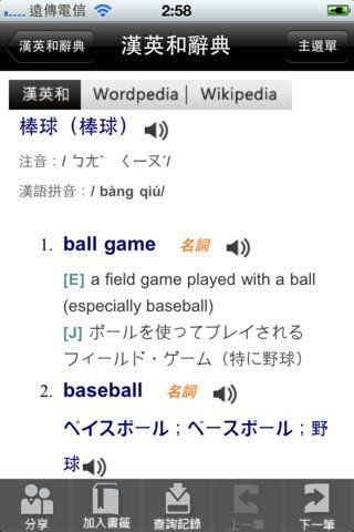 太讚了!早前的詞典全部也是英文為主,這次限免的《遠流多語字典通》是一套漢英詞典 App,收錄多 30 萬字詞資料,也提供 Text to Speech 擬真人發音功能!《遠流多語字典通》是台灣首部透過語料探戡結合人機合作所編輯的多語字典,所有內容皆經過專業編輯,為製作嚴謹的字典。