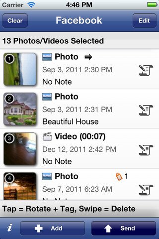 這套名為 MultiLoader for Facebook 的工具是一套很方便的相片/影片上載工具,透過它將你 iPhone 內的相片一次過大批上載到 Facebook Album、Page、Group 可謂十分方便。它最大賣點就是內置智能選相功能,只需 2 秒就可以找出要上載的相片了!你更能透過它快速 Tag 朋友、Rotate 相片甚至加入 Memo、建立新 Album 及設定權限。它更提供了相片拼合功能,把數幅相片拼成一幅上載到 FB 效果更佳!
