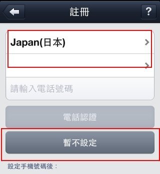 4. 在地區直接選「日本」,在電話一欄留白,選「暫不設定」。