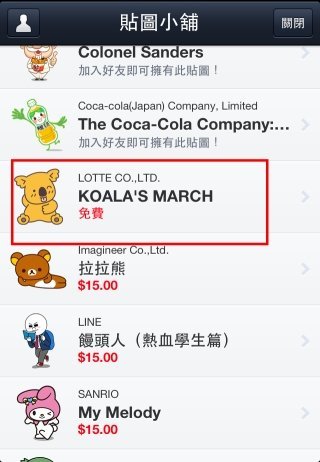 8. 另外,到貼圖小舖的「新增」,細心一點可以發現更多免費的貼圖,包括最可愛的「樂天小熊餅」!