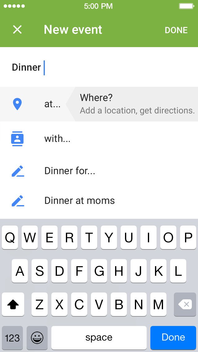 為了能讓用戶快速地填寫日曆,Google 也提供了填寫輔助功能,讓系統自動提供活動標題、地點和人員的建議,讓您更能快速建立活動。最後,如果你已經有在別的日曆建立行程了的話也不必擔心,因為 Google 日曆能支援您手機上的所有日曆,包括 Exchange 和 iCloud,將它們統統整合到一處,是不是很方便呢?