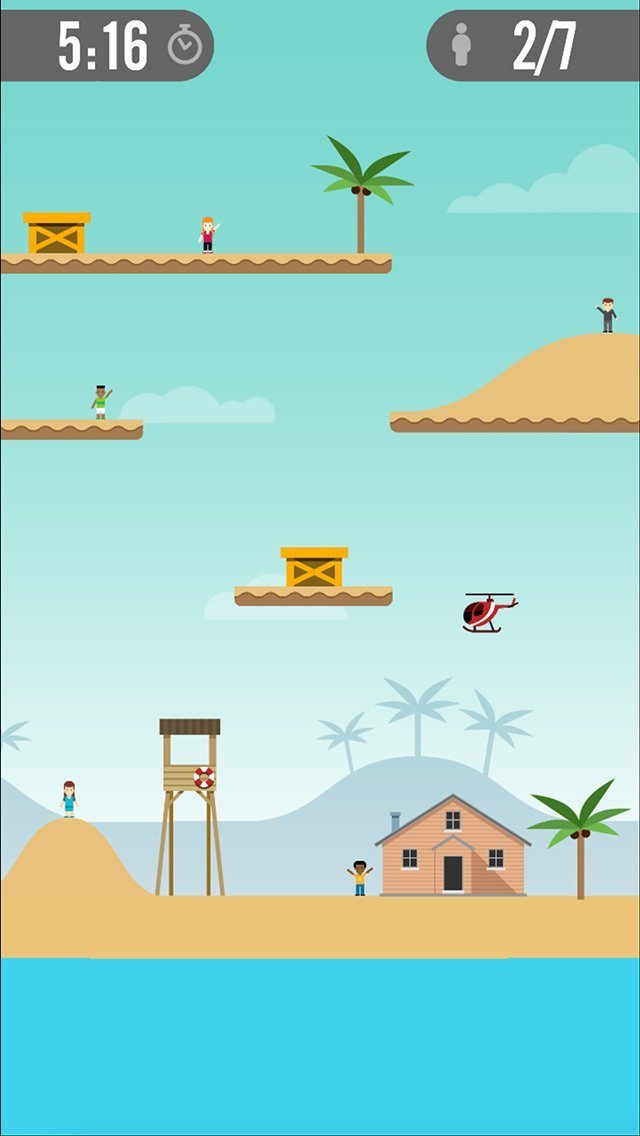 而這趟風險極高的搶救任務就仰賴你的高超技術了,遊戲裡玩家僅能利用觸碰左右螢幕來調整直升機的方向、升降等,若是按得太久直升機還會加速前進,考驗你的反應能力。不過等待救援的人似乎有著很好的身手,僅要讓直升機接近他們,他們就會自己登上直升機囉!