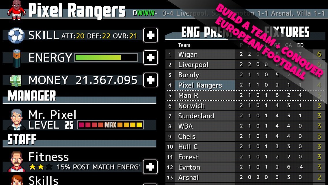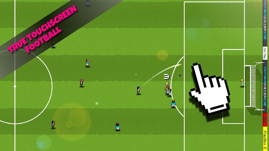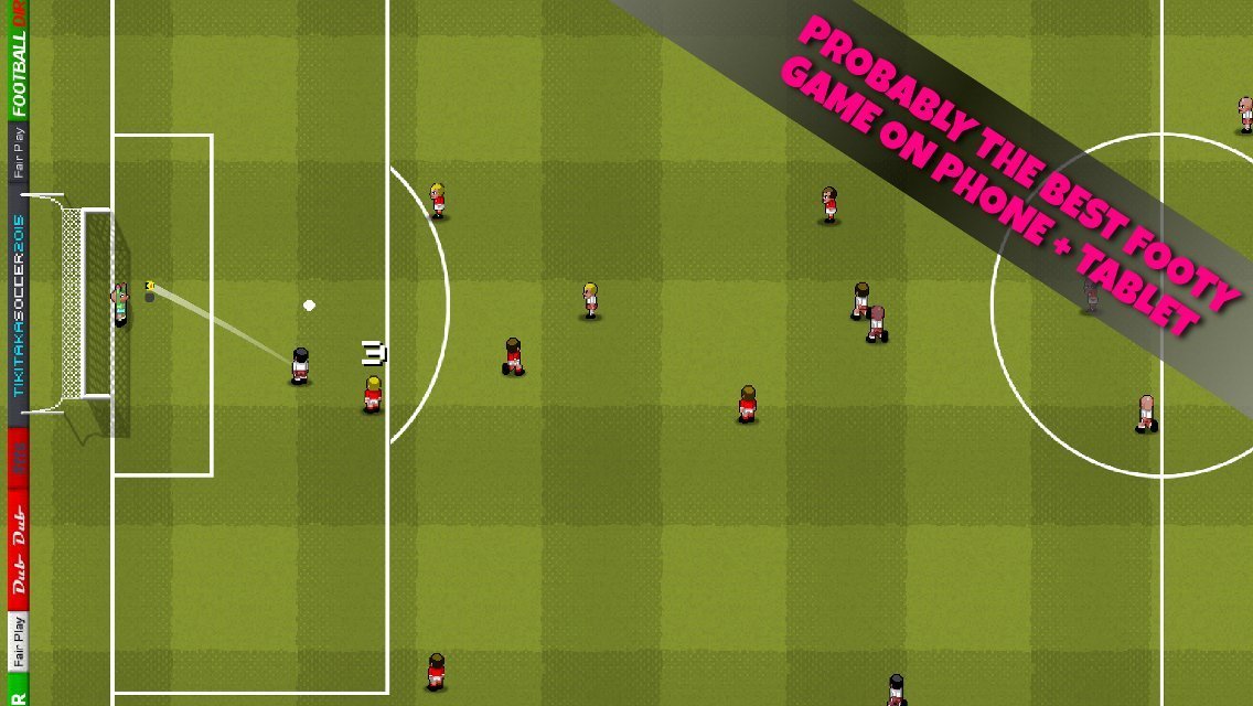 遊戲的操作在一開始會有簡單的教學,玩起來也非常適合觸控面板。簡單來說就是透過點擊螢幕的方式來進行跑位、傳球、截球等,透過手指滑動螢幕來進行射門。就是如此簡單的操作你就可以踢完整場足球比賽。