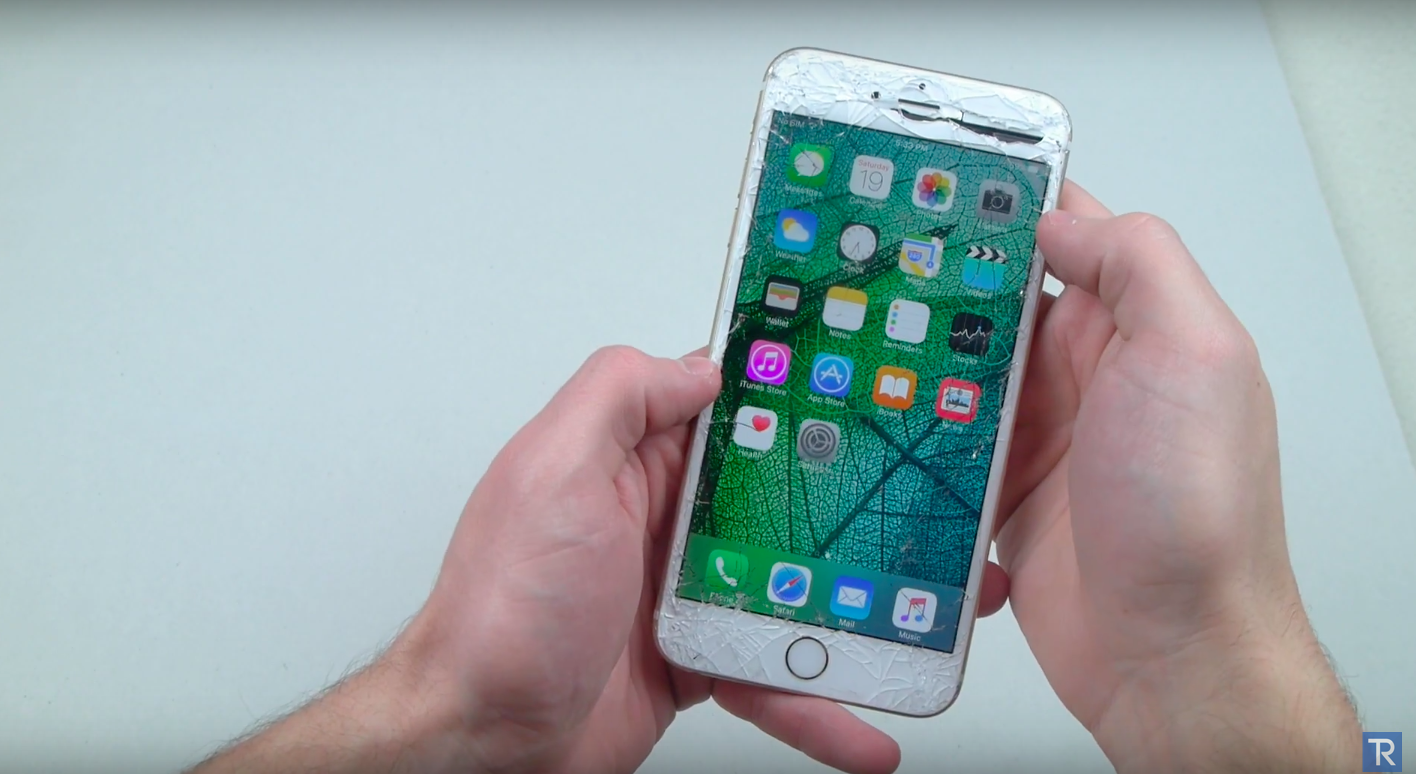 測試完的 iPhone 6s Plus 已經身受重傷,螢幕亦已經破裂並且有碎片掉落,不過令人驚訝的是依舊不影響 3D Touch 操作!
