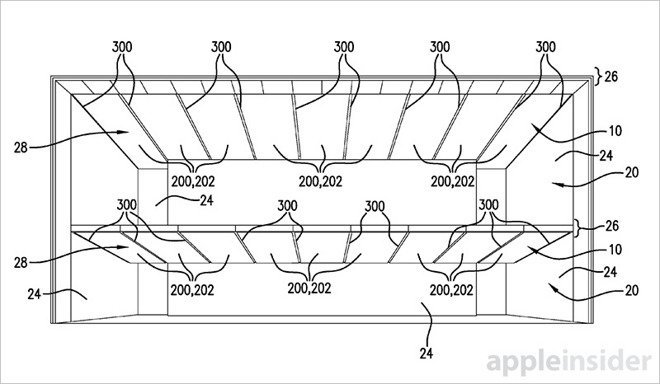 美國專利商局今天公佈了 Apple 的一項新專利,專利與 Apple 的產品無關。而是針對 Apple Store 照明系統所申請的專利!專利內容描述了一套天花板照明系統,實行後的效果是將整個天花板變成一個照明系統,這項設計其實已經應用到部份重新設計的 Apple Store 內,未來將廣泛或者統一使用這套天花板照片系統!15339-11574-151222-Ceiling-l