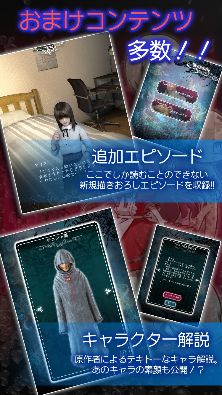 過去曾發售於手機平台的恐怖文字冒險遊戲《歪みの国のアリス》這次要以全新的面貌重現,不僅有著全 3DCG 描繪的美麗場景,各人物也有了完整的造型,讓你更深入其境。此外還有著重製版才有的特別內容以及追加故事,讓即使是玩過舊版的玩家也能獲得新的體驗。