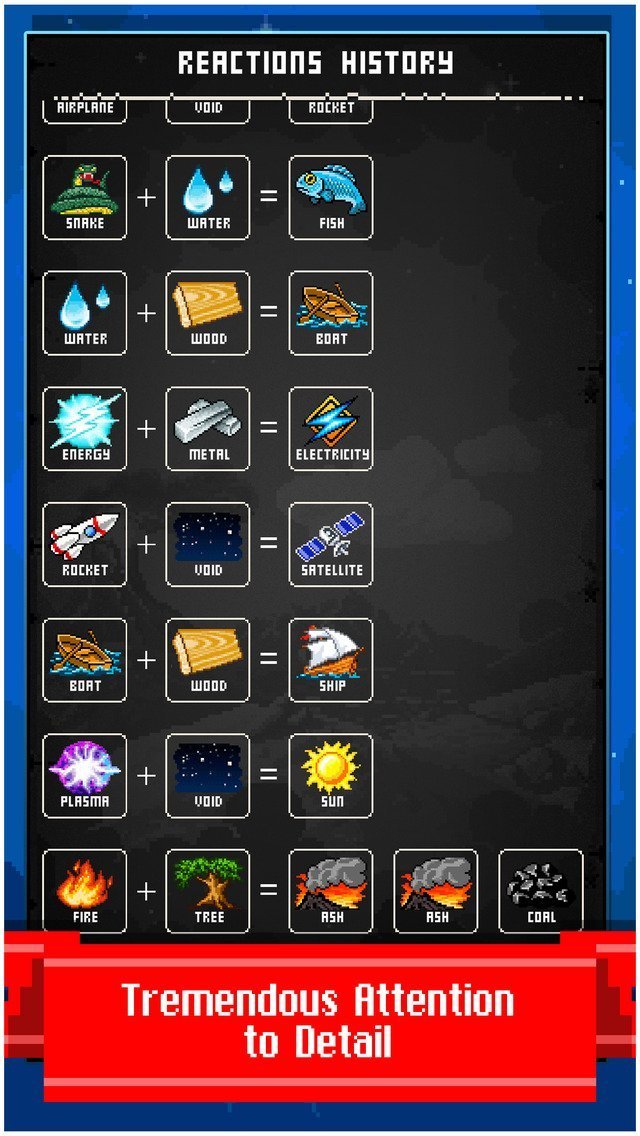 在一開始,玩家僅有火、水、土、空氣等元素,但透過混合,你就可以創造出岩漿、雲朵等等,而這些被創造出來的新元素,也可以用來混合,最後變成越來越複雜的物品。雖然遊戲沒有豐富的故事劇情、角色設定、畫面表現,但是這種豐富創造的玩法可是擄獲了不少玩家的心,另外這款《Doodle God: 8-bit Mania Blitz》是以基本免費制上架,讓每位玩家都能體驗一下這創世紀的風采!