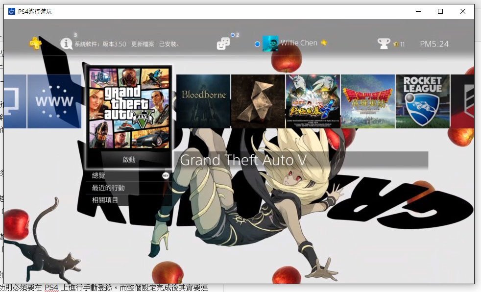 再來當然就是使用上的感想啦!要注意的是官方有表明「部分遊戲未支援遙控遊玩」,因此可能不是每款遊戲都可以使用這項功能,而經過筆者測試,可以發現遙控遊玩時解析度並不高(最高 720p,筆者測試時皆使用預設設定 540p),但是在操控的部分不會有延遲的狀況,也就是說只要你的網路夠好,其實就像是在電腦上玩 PS4 一樣,操作介面等都沒有任何差異。