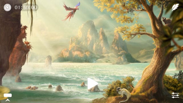本作支援背景程式播放,除了海浪聲外還有雨聲和鳥類的聲音 … 等等大自然的聲音效果,畫面更是具有美侖美奐的海島風情,好似渡假勝地。
