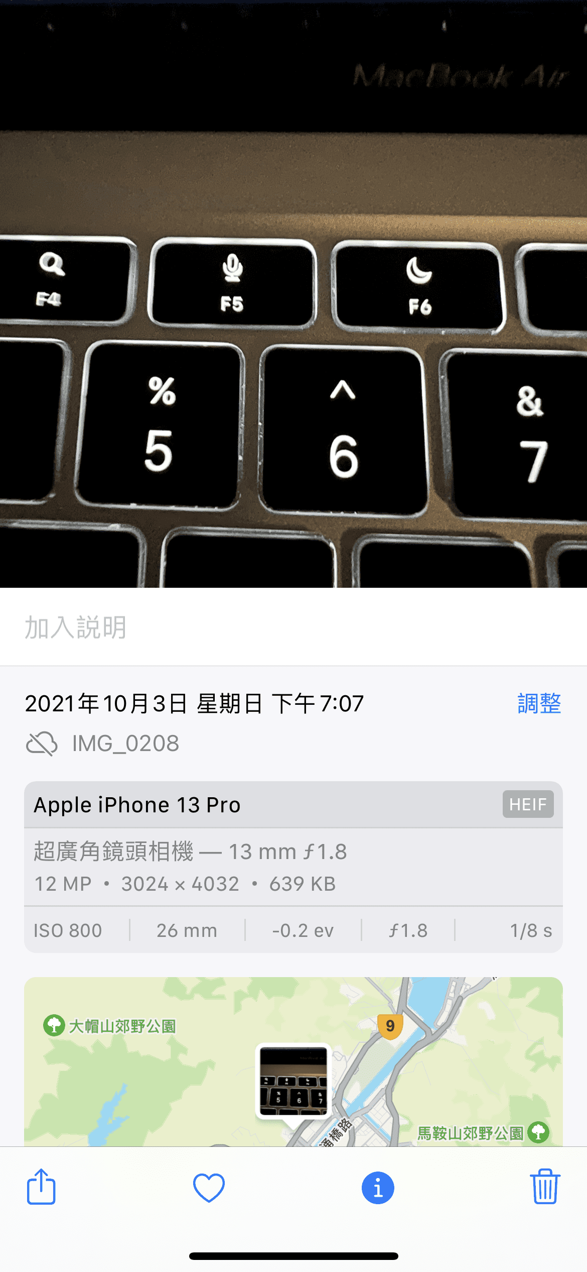 首先進入相片 App 選取你想要檢查的相片,再往上推,就會出現更多資訊。